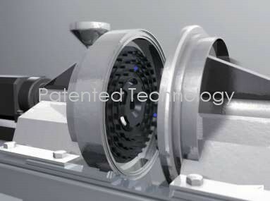 The rotor disk's also utilise a patented design that prevents unchecked passage of the material being processed, further increasing the efficiency of the micronisation process. Material is introduced through the central area of the rotor system through a vacuum process. It then passes between the rotor disk blades which creats an extremely turbulent environment increasing the collision and friction of particles in a short period of time. The resulting environment forces particles to collide at over 3,000km per hour. This centrifugal force created during the micronising process is enormous and each microniser requires excessive anchoring to remain stable.